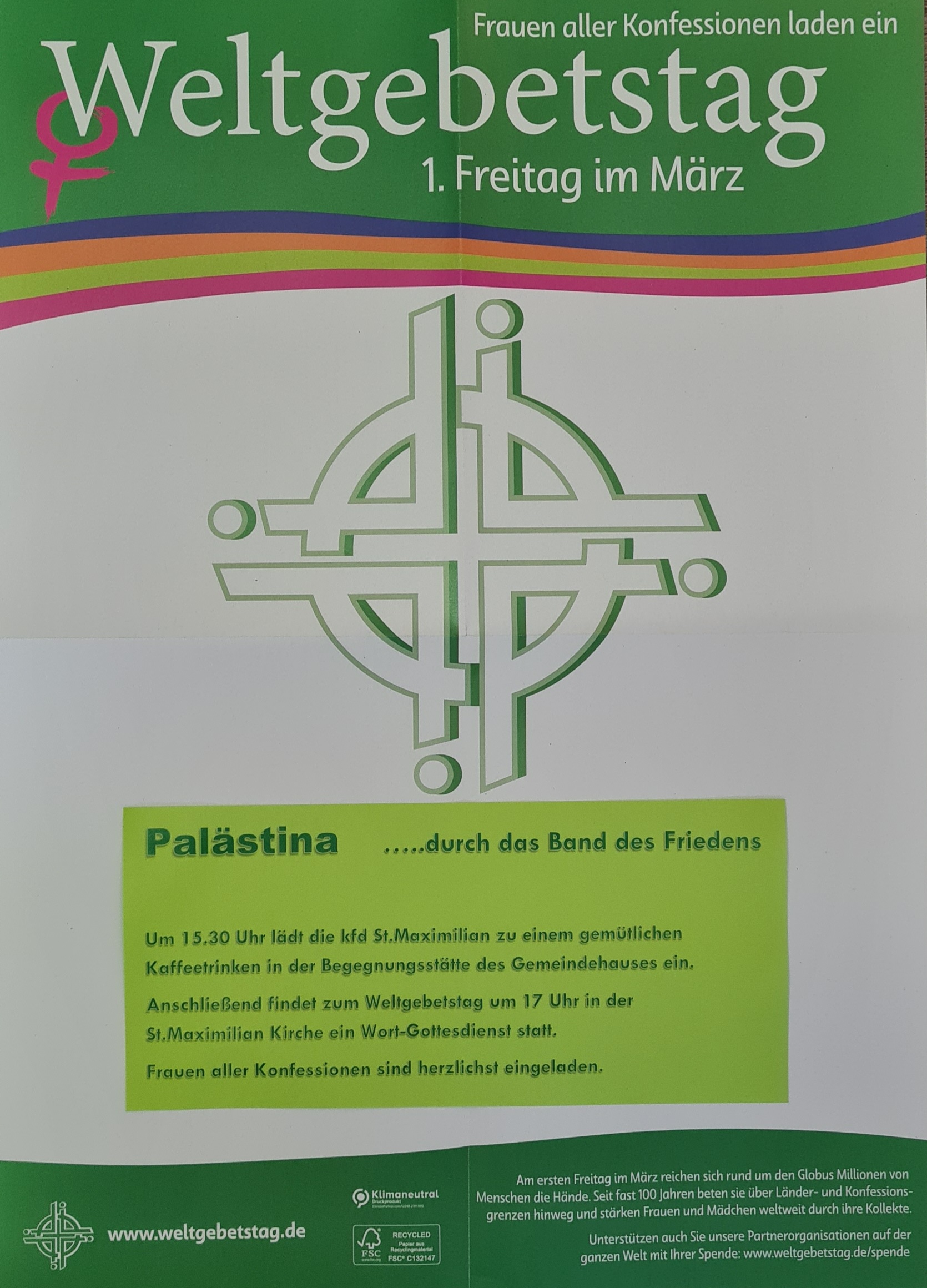 Vor dem Gottesdienst lädt die kfd St. Maximilian zu Kaffee & Kuchen ins Gemeindehaus ein.